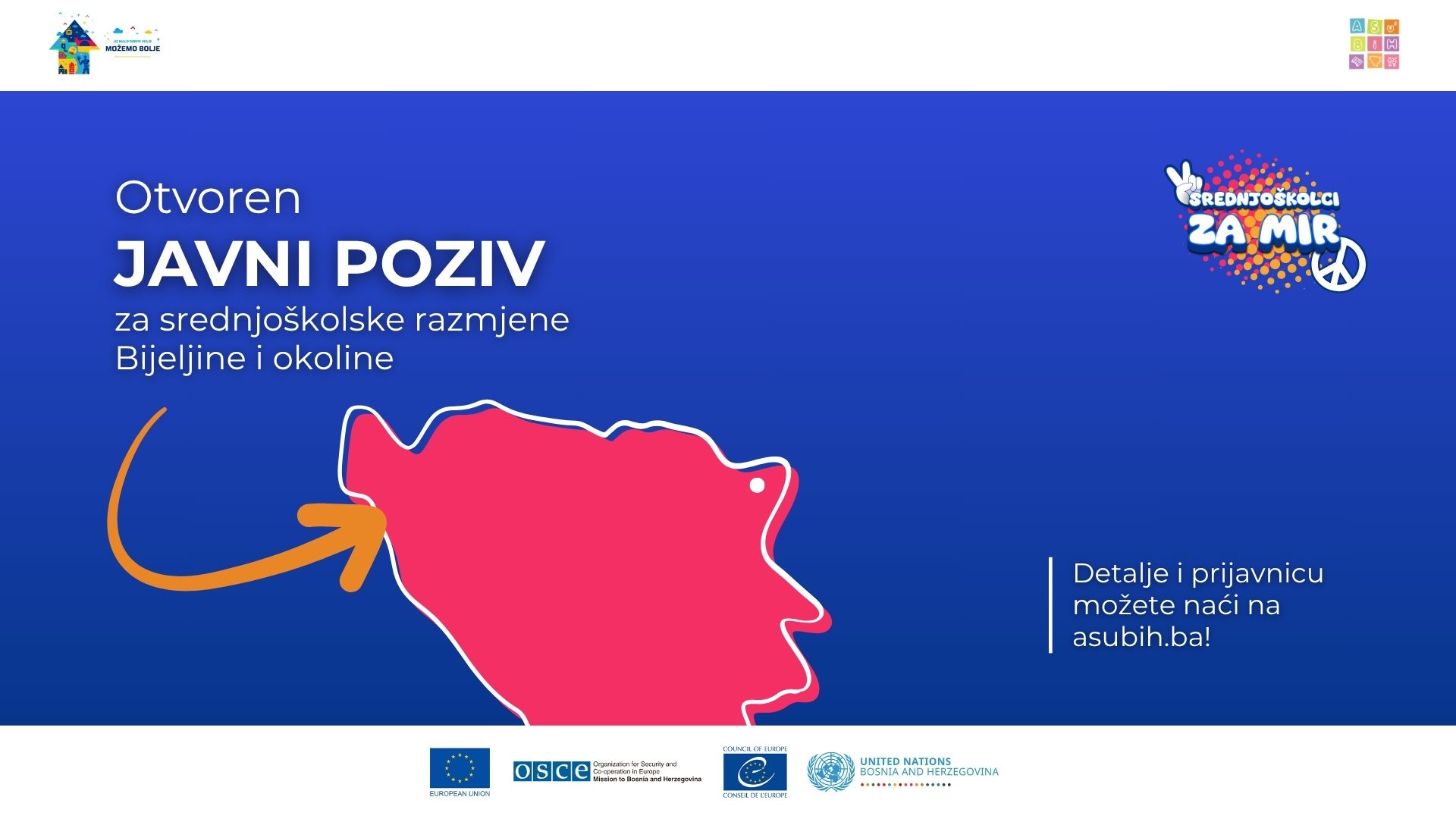 Srednjoškolci za mir podržan je kroz projekat „Jačanje povjerenja i kohezije u zajednicama u Bosni i Hercegovini – Možemo Bolje“ koji finansira Služba za instrumente vanjske politike Evropske unije u okviru Instrumenta za susjedstvo, razvoj i međunarodnu saradnju, a zajedno provode Evropska unija, Ujedinjene nacije u BiH, Misija OSCE-a u Bosni i Hercegovini i Vijeće Europe.