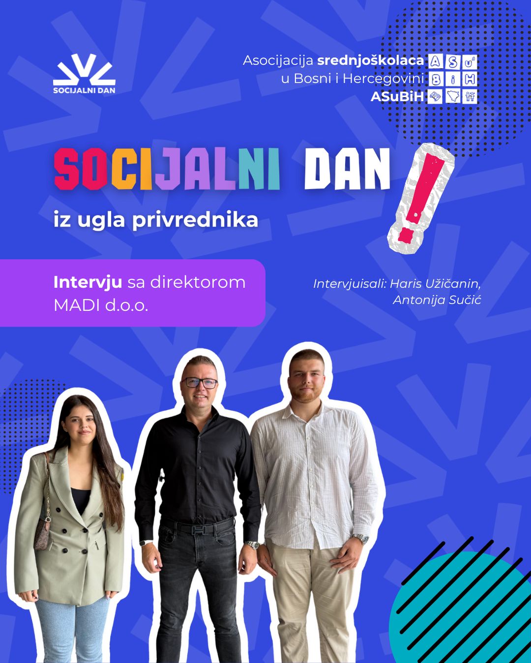Posebnu šansu MADI daje mladima. MADI učestvuje u projektima poput Socijalnog dana, gdje srednjoškolci dobijaju priliku zamijeniti školske klupe radnim mjestima. Ali Jabandžić ide i korak dalje – otvoreno govori o slabostima obrazovnog sistema: